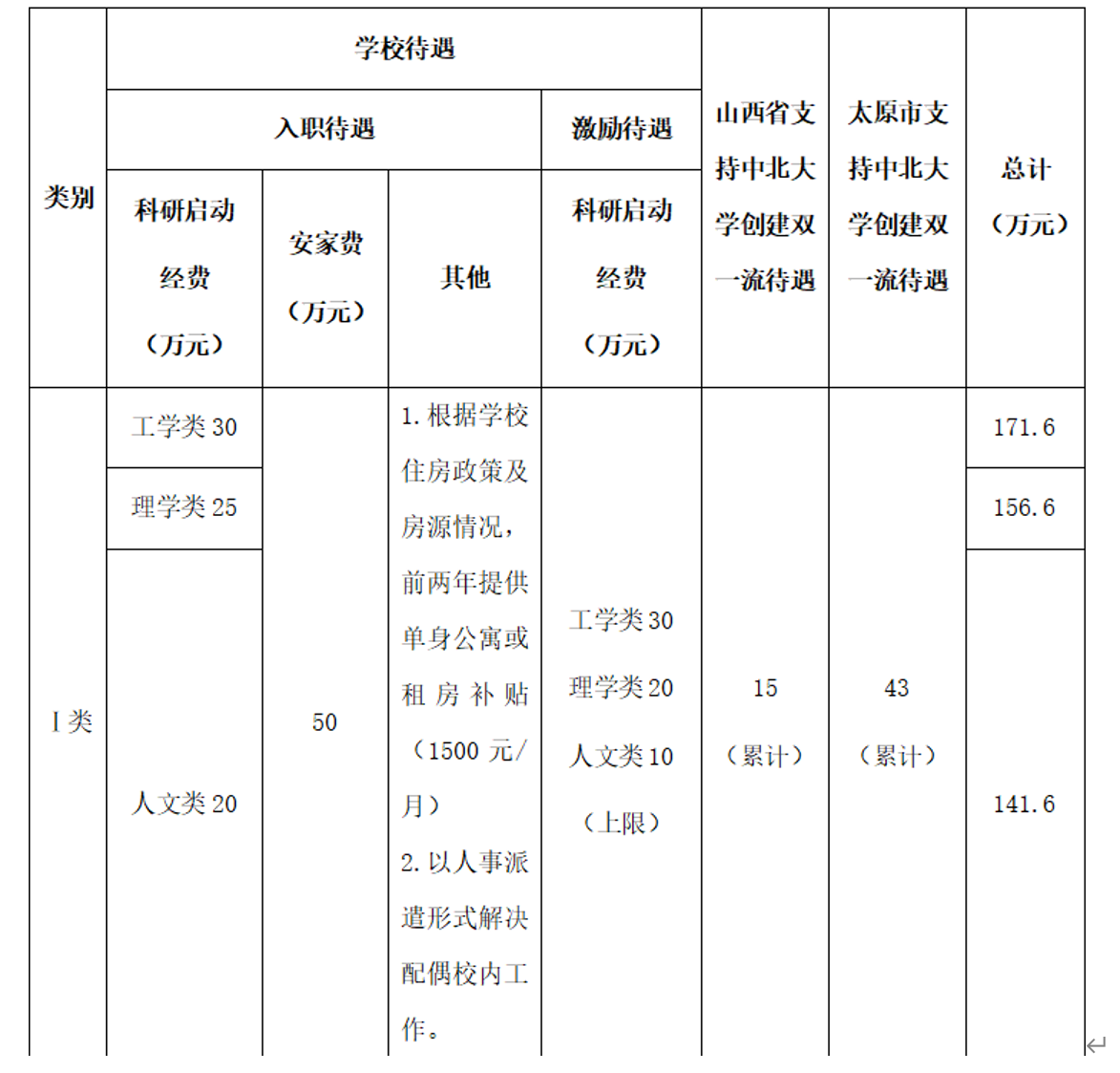 备注:以上为各类别引进待遇最高额度,包含山西省、太原市支持中北大学创建“双一流”大学提供的人才引进待遇。学校待遇具体请咨询联系人。省市待遇发生变动时以申请当年省市政策为准。